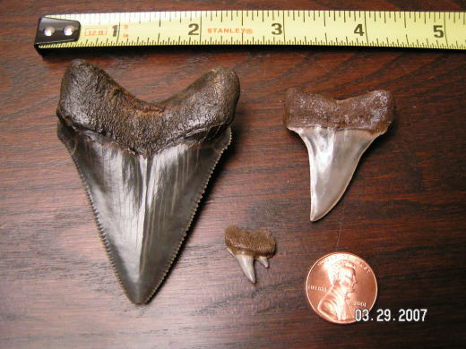 You can't beat Brownies for breakfast.I have had a tough work schedule lately. Only one fossil adventure over the past two weeks. This morning I thought if I played my cards right with work I could get a quick hunt in at my favorite beach. I got up extra early and made my way all the way down to the hunting grounds only to find that a guy from Syracuse, New York left at 10 pm last night to hunt this beach!! (true story, spoke with the guy...had NY plates!) I was number two on the beach. I like to be number one if I get up this early! Luckily for me he was even greener than me with the fossil hunting and he had not made it to the "good" areas yet but rather was "screening for Megs" by the beach entrance. I still had a window of opportunity to get to virgin beach. With that I was around the corner to start my "low and slow" approach to working the beach. I was finding the usual finds when I was over taken by an older lady who was working the beach at mach 3! She said hi and by in the span of 10 seconds and now I was sure I had lost any opportunity at finding the big one. I kept at it and then came across an area that looked good. I was finding a lot so I decided to really work the area well. I found the nice Meg in about five inches of water. Only the hump by the bourlette was exposed. This tooth is in VERY good shape!! It is 2 7/8" with all the bourlette, sharp serrations, and all but two or three serrations by the very tip. The root is perfect. It had some thin matrix welded to it. I removed as much as I felt comfortable doing. This Meg was my best one from this part of the bay so it was exciting. (no we don't get three inch teeth on every trip in Maryland!!) The morning was capped off with a dandy 1 6/8" Mako and a real nice Cow. Good hunting Chris