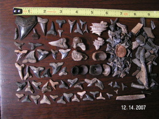 Highlights include some porpoise ear bones, one small porpoise tooth, a single but nice cow, a bunch of good snaggletooth teeth with one having a deep reddish color, and what looks to be a thresher tooth. Lots of basic teeth and pretty well preserved vertebra round out the trip.