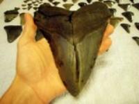 I arrived at the site within 15 minutes of putting the boat in, and anxiously jumped out and started hunting. The first tooth of the day was a small, but cute, Paratodus benedeni. I’ve only found a few benedeni’s from this site, so that was somewhat exciting. There were plenty of teeth exposed at the surface, but quite a few have chipped roots. As the day progressed, all I had to show for my efforts was the little benedeni, which is still pretty cool, and a Ziploc freezer bag half full of incomplete teeth. As I wandered further away from the boat I started losing hope but kept on searching. About 2 hours into the hunt I spied a promising little gravel area and headed towards it. I immediately found a couple damaged teeth and started getting excited. I was inching along when I saw a large, interesting looking “cobble.” I took a closer look and realized that it was indeed a 3 ¾” Carcharochles auriculatus. It definitely wasn’t in perfect condition, but it was by far the largest “ric” I’ve ever found. That tooth would have made the day but, as any fossil hunter can confess, you are always hoping for that monster meg, so I kept looking even though I knew I was going to be late for poker night. Well, about 10’ away from the big “ric” I found a > 3” Carcharocles megalodon tooth, but it was pretty beat up. It’s still fun, however, finding those big teeth, regardless of condition. So the two big (> 3”) teeth, the little benedeni, and the bag full of decent, but damaged, teeth would have made my day. But I kept looking (all the while realizing that I would be extremely late for poker night).