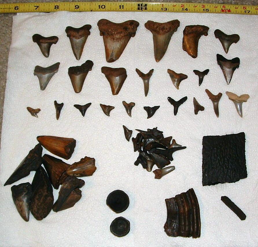 Edisto Odie - BRFC Bench PlayerLast weekend was FossZette’s and my anniversary day. We like to exchange thoughtful presents to each other; I gave her a nice spa treatment and she gave me a fossil pass good for one full day of collecting. I decided to give the Edisto a try since the rains have let up some over the past week or so. I called up DW, and he informed that he had been placed on the BRFC injured list from a non-paleo related eye ailment. I asked my work buddy Odie to join me and the river rat that he is obliged. We met at the river about 9AM to find the water moving at a pretty good pace and the river was also silty. Being a river veteran, Odie informed me the outgoing tide was increasing the current that day. After we geared up, I swam into some nice gravel beds and realized I was about 6 inches from the bottom to see anything. I drifted down river about 25 yards and looked through the rocks piled up in the limestone cut-outs. I picked up a few small teeth and then a shamer angy. As I closed my bag and looked up, I was greeted by a large flathead catfish. MMMMMMMMM, catfish and grits I thought; but he swam off before I could bag him. Back to fossilin’. The second dive was about the same; except this time I searched the chandler bridge on the river bottom a little more closely and picked up two nice smaller angys. The vis got a little better, but I would say the most I could see was 1 foot. It was a pretty tough day diving, so I was happy when I laid out my goods at home.