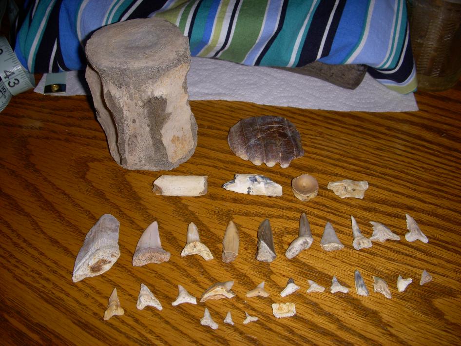 new spot turns up awesome colors. A new spot turns up awesome colors and some cool finds. Today's hunt was a treat for me a local fossil hunter took me out and showed me that there is other ways to collect teeth other than getting wet. ha ha ha. Check out the colors on these teeth. Today turned up some pretty cool finds and a first for me. As you can see from the pics 3 hammerheads, a couple of tigers and one meg that measured in at a little over 2 inches along with one whale vert. The find of the day for me was the Eagle Ray plate that was burgundy on one side a white on the other. That Ray plate messured in at 2 3/4 inches.