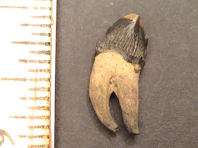| The Squalodon tooth is at the left. Notice the tiny Angy blade sticking out 6" to the right. |