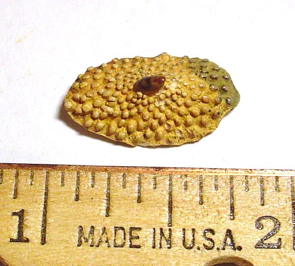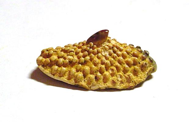 Unknown Fish or Ray Dermal Scute This isn't in any of my Eocene books so I don't know what species its from. I just know it looks really cool. Its covered with tiny little bumps that all surround a main central cone that has enamel on it. If anyone knows what species this is, please let me know. Thanks!