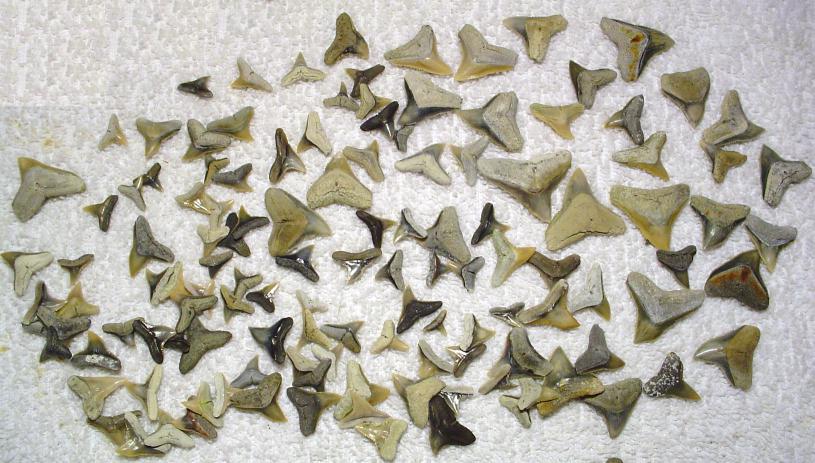 Various Carcharinid Shark Teeth These are all over the place. The bigger ones are from the Yorktown, and the smaller ones are from the Pungo. Its really tough to distinguish between them.