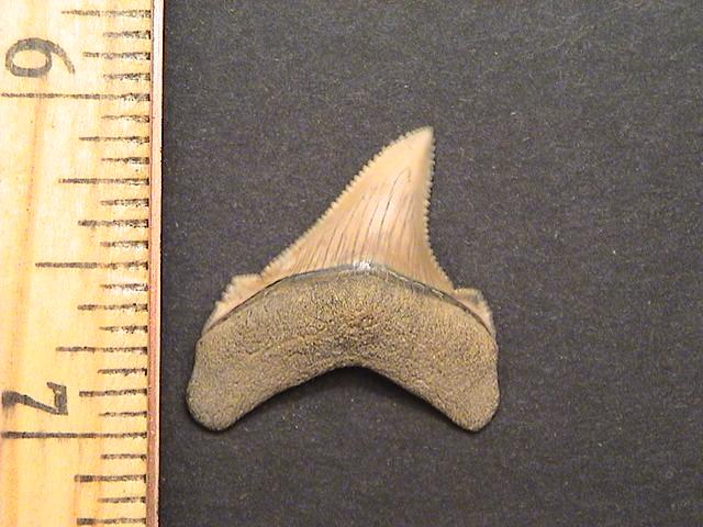 1 1/8 Angustidens Shark Tooth Juli's first ever Carcharocles tooth. This tooth came out of our first ever screen load of SC ditch gravel. Juli wasn't very impressed with it at first but we had a little talk - It's a killer!