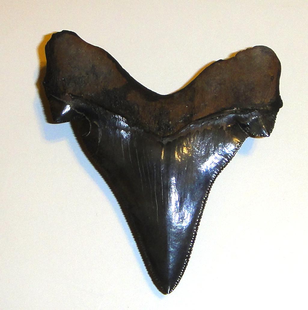 Unbelievable Quality Angustidens Mega Shark ToothI really can't say enough for this tooth. I found it laying on the surface, but it hadn't been there for long. By the color patterns on the tooth, I could see that the tip and majority of the tooth was poking out of the chandler bridge formation, while the edges and the entire flat side of the tooth were still embedded. When it flipped out, it was deposited exactly where I found it. This tooth has not tumbled down the river like so many other sharks teeth we find. The root is the weakest part with minimal pitting on the lingual side. But everything else is amazing, including the sharp tip and steak knife serrations. The shape of the blade is just cool with a gentle but deadly curvature as the blade tapers to the tip. And those cusps - WOW! I can think of few angustidens I've ever found with cusps this big and perfect.