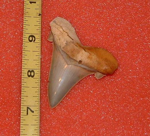 2-1/2 Inch Auriculatus Another fantastic C. auriculatus specimen from SC. This one has it all, crisp blade, full bourlette, intact root and fully serrated cusps.