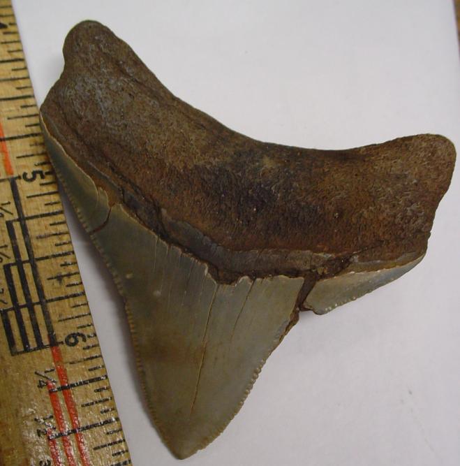 2 13/16" Fossil Megalodon Shark ToothThis is the second megalodon tooth I found scuba diving today. Its a nice posterior tooth with serrations, tip, and great root. It was completely exposed when I found it.
