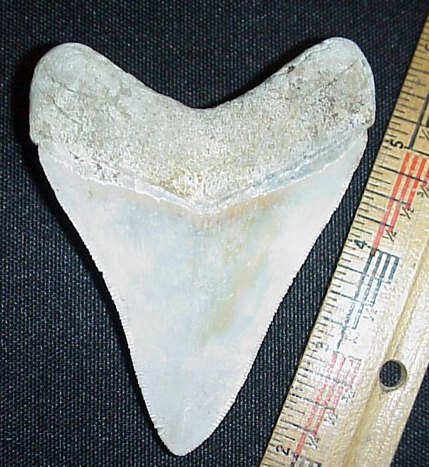 3 15/16" Megalodon Shark ToothA completely serrated, killer white megalodon tooth. Its so awesome that I carried this one around in my pocket for 3 days after I found it!