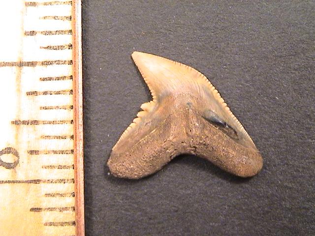 5/8" Tiger Shark Tooth Tiger shark teeth are fairly common in the Miocene streams of NJ and most of the time, equally unremarkable. This tooth however is in really nice shape with a color that is very uncommon for the stream - a great little tooth.