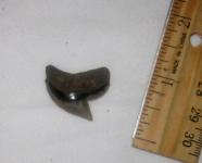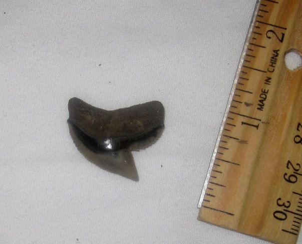 Modern Tiger Shark ToothMy first modern tiger shark tooth from the Pliocene land site, and it's a beauty. This is probably my best modern tiger shark tooth from South Carolina. This tooth was found in February 2011.