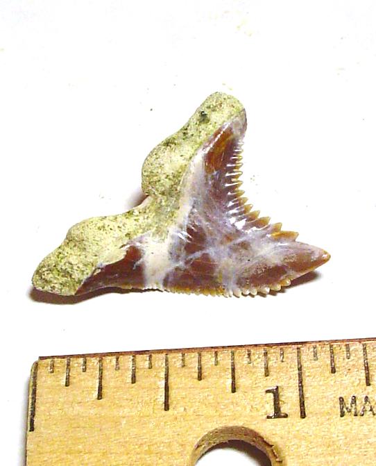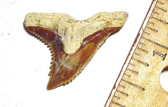 Fossil Hemipristis Tooth Not as big as the other hemi from today's trip, but its really pretty. Its red with a bright white stripe. Very nice!