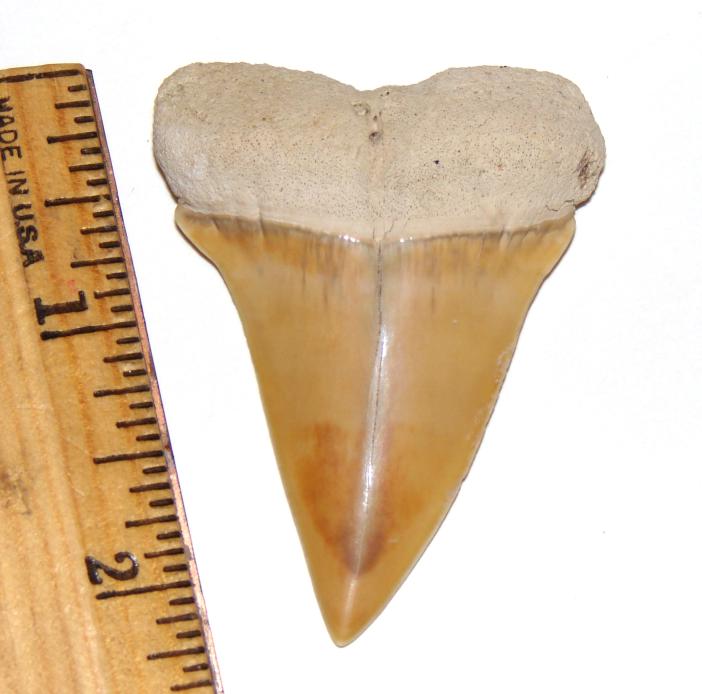 Fossil Isurus hastalis (Broad Toothed Mako) Shark ToothHands down, this is the best preserved Mako I've found in nearly 20 years of hunting for shark teeth at land sites in the Lowcountry of South Carolina. I can't say enough! Its got killer color, its big, the edges are so sharp I literally cut paper with them. And that root is virtually unblemished. Fossilguy was right next to me when I found this gem. Its amazing to find something this well preserved in the reformulated Hawthorne layer. Its so well preserved that it looks like its Chilean.