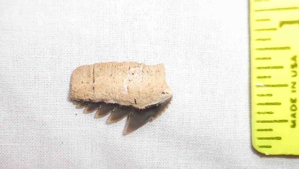 Eocene Cow Shark Tooth This is the cow shark I talked about in the post that my little brother found. The blade on this thing is perfect. The only flaw I can find is a small peice of root is missing on one corner.