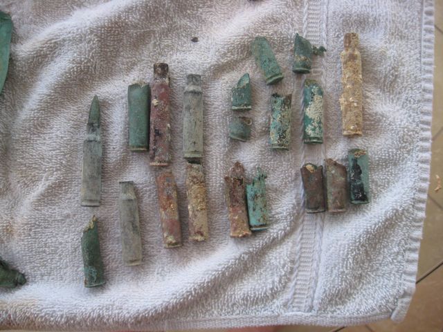 > 11 whole or partial .50 caliber machine gun shells (one with bullet!),