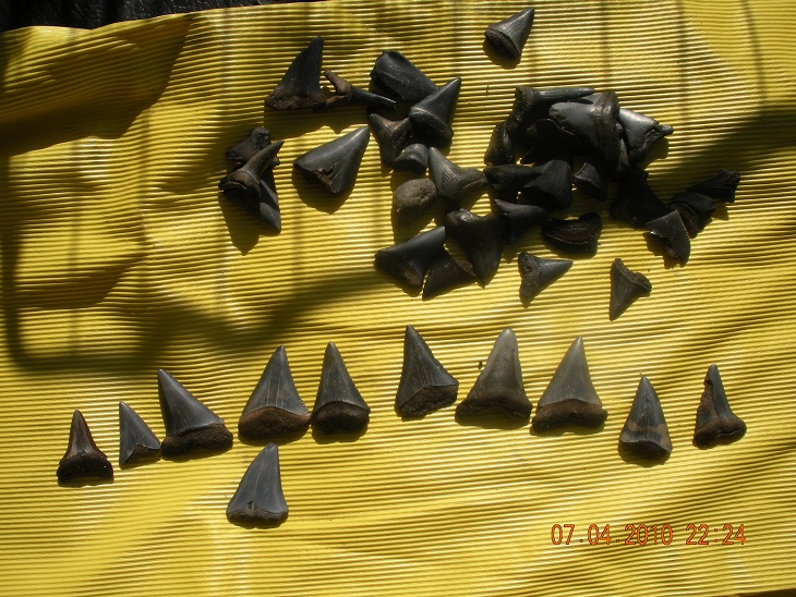 I took him to the spot that I have been digging in for a while now and where I found the nice stanfield blade last week in the trip reports, and after some engineering in the creek we made the water help us out,lol. We dug for about 5 hours and found a pretty good assortment of nice teeth, a couple of nice 2" makos and some nice 2" GW's, got a few big crow teeth and I got (help me out rick) the back tooth of a meg??? I dont remember what he called it, Im still learning. I think I ended up with 5 GW's 2 of which were perect and 2 perfect makos, and mark ended up with 2 perfect GW's and a few perfect mako's.
