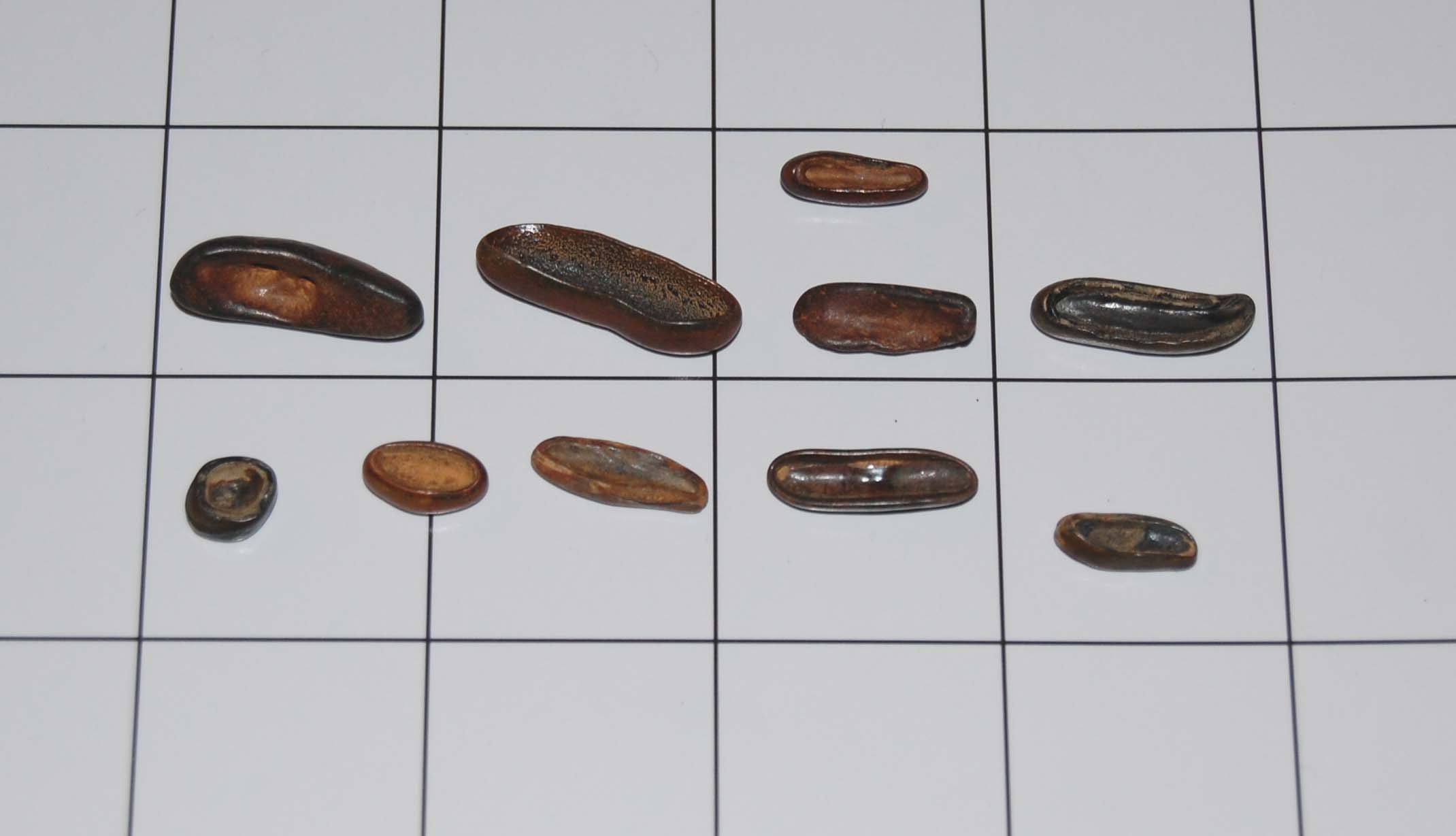 Severe Fossil WithdrawalNever having posted my New Jersey fossil finds and going through a serious winter fossil withdrawal period I decided that I had to do something so I have dumped out all my little jars and did my best to group like items together. Now I know you guys out there finding those hugh megs may tend to look down at my collection do to the size of these guys but let me remind you that when good old Megalodon was swimming the sea there was at the bottom of the ocean (or under the ocean) my new jersey fossils from the cretaceous. The grid pattern is in 1 inch increments. Feel free to identify any thing of interest in the photos and if any of you new jesey guys ever want to team up and hunt fossils I am in. contact me at mikegrutt@verizon.net